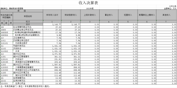 本單位2022年度收入總計3148.77萬元,其中年初結轉和結余 0 萬元,較2021年增加624.75萬元,增長19.8 %;本年收入合計3148.77萬元,較2021年增加624.75萬元,增長19.8%,主要原因是:工資福利收入及項目增加。