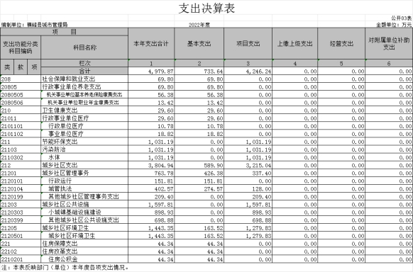 本部門2022年度支出總計 4979.87 萬元,其中本年支出合計4979.87 萬元,較2021年增加680.32 萬元,增長13.6 %,主要原因是:項目支出增加;年末結轉和結余 0 萬元,較2021年增加0 萬元,增長0 %,主要原因是:無。
