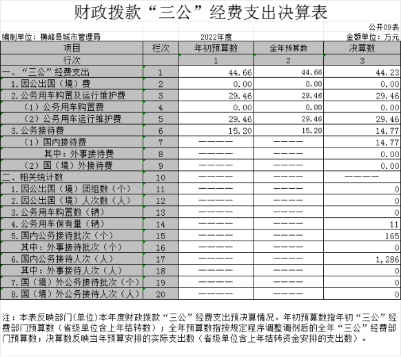 “三公”經費支出:指用財政撥款安排的因公出國(境)費、公務用車購置及運行維護費和公務接待費。其中,因公出國(境)費反映單位公務出國(境)的國際旅費、國外城市間交通費、住宿費、伙食費、培訓費、公雜費等支出;公務用車購置及運行維護費反映單位公務用車車輛購置支出(含車輛購置稅、牌照費),按規定保留的公務用車燃料費、維修費、過橋過路費、保險費、安全獎勵費用等支出;公務接待費反映單位按規定開支的各類公務接待(含外賓接待)支出。