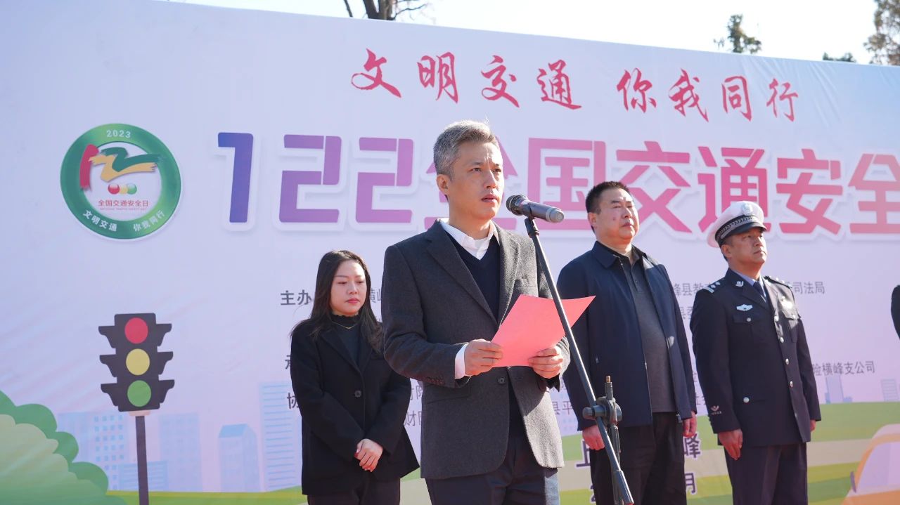 在橫峰縣122全國(guó)交通安全日啟動(dòng)儀式上,副縣長(zhǎng)、公安局長(zhǎng)、縣道專(zhuān)委主任莊嚴(yán)充分肯定了一年來(lái)橫峰縣道路交通安全工作成效,分析了全縣道路交通安全形勢(shì),強(qiáng)調(diào)縣、鄉(xiāng)道專(zhuān)委及其成員單位、村居道安站要緊緊抓住“全國(guó)交通安全日”主題宣傳活動(dòng)機(jī)遇,通力合作、凝聚合力,積極組織、動(dòng)員社會(huì)各界攜起手來(lái)、廣泛參與,充分發(fā)揮各類(lèi)宣傳陣地作用,不斷延伸交通安全宣傳觸角,充分運(yùn)用融媒體技術(shù),開(kāi)展全方位、立體式、群眾性、互動(dòng)性交通安全宣傳,提升文明交通社會(huì)關(guān)注度,讓每一個(gè)人都能自覺(jué)踐行“安全文明出行”的理念,全面形成人人抵制交通違法、人人踐行文明交通、全社會(huì)共建共享交通環(huán)境的良好風(fēng)尚,努力打造“路暢、人安、文明、和諧”的橫峰交通新名片。