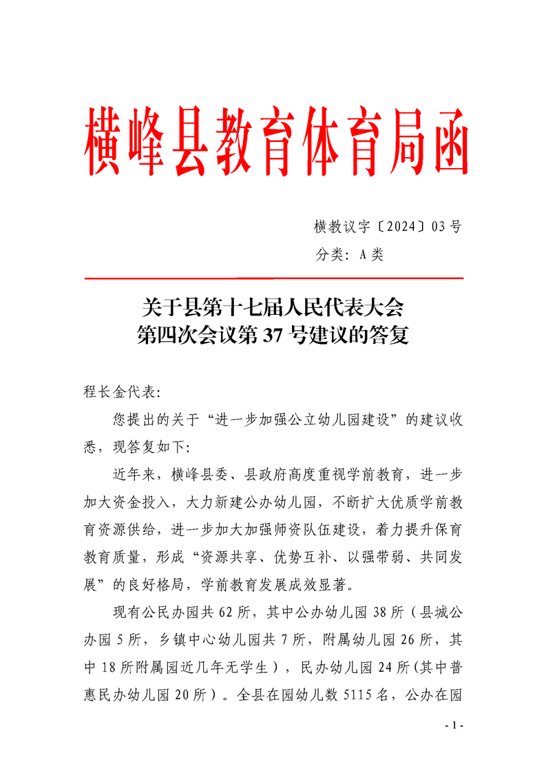 關于縣第十七屆人民代表大會第四次會議第37號建議的答復