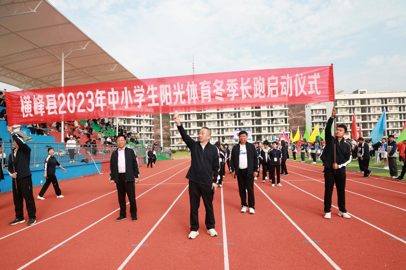 開幕式后舉行了2023年橫峰縣中小學生陽光體育冬季長跑啟動儀式。
