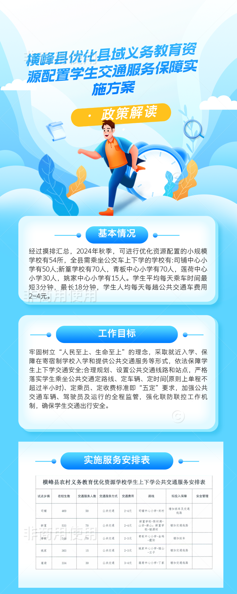 一圖速看《橫峰縣優化縣域義務教育資源配置學生交通服務保障實施方案》