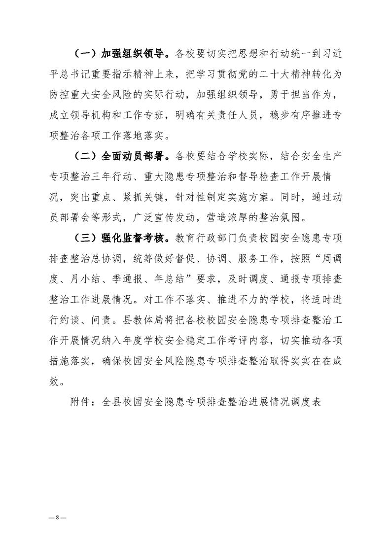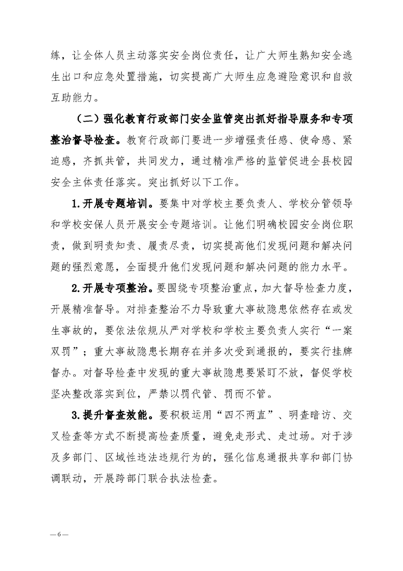 關于印發《全縣校園安全隱患專項排查整治2025行動工作方案》的通知