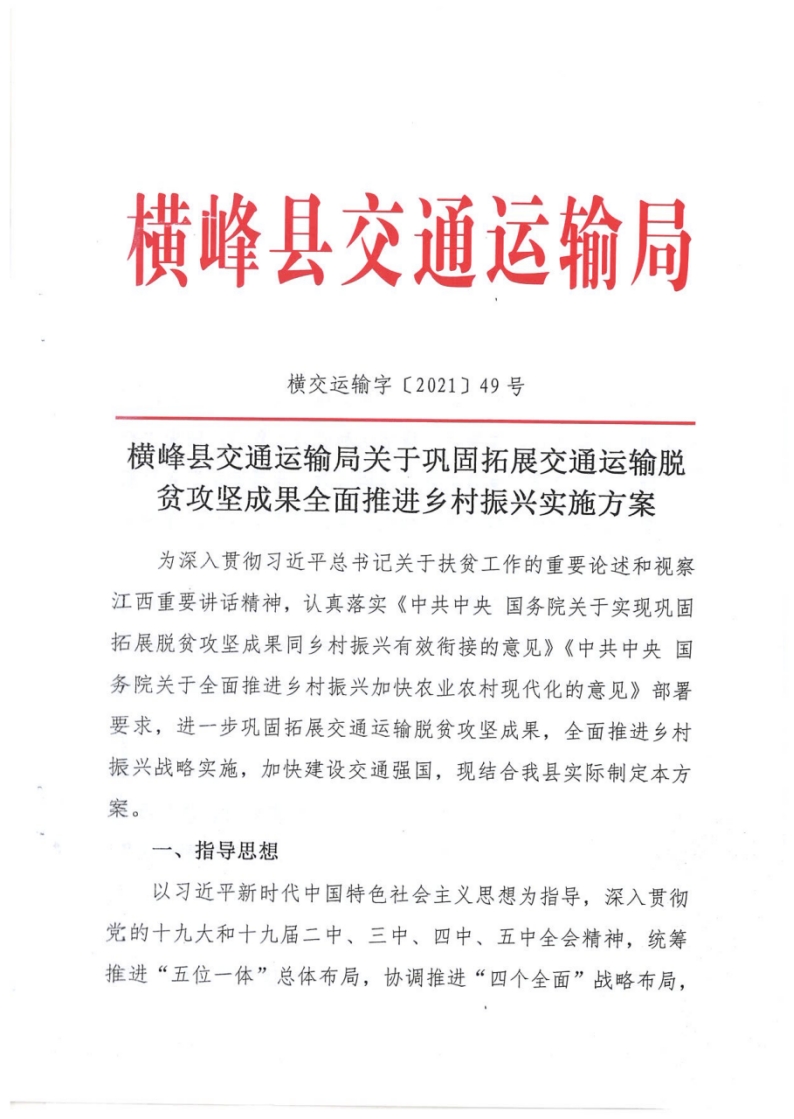 橫峰縣交通運輸局關于鞏固拓展交通運輸脫貧攻堅成果全面推進鄉村振興實施方案