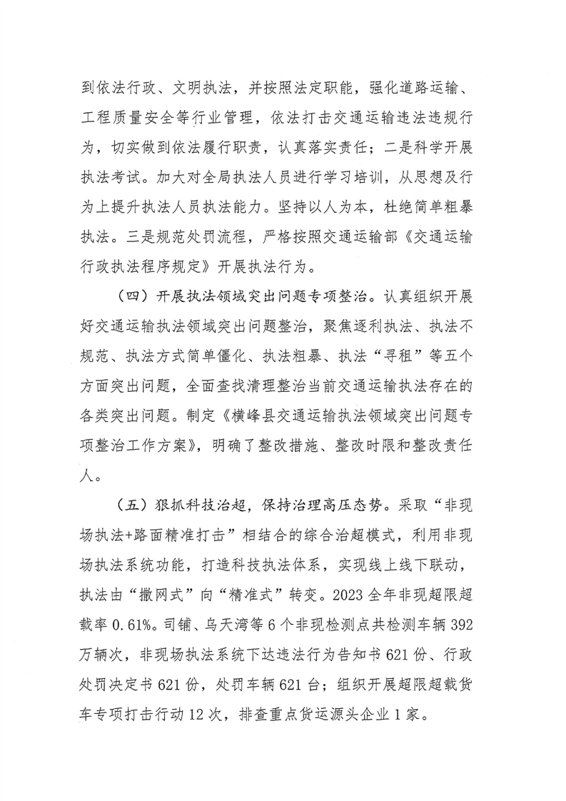 橫峰縣交通運輸局關(guān)于2023年法治建設(shè)工作情況