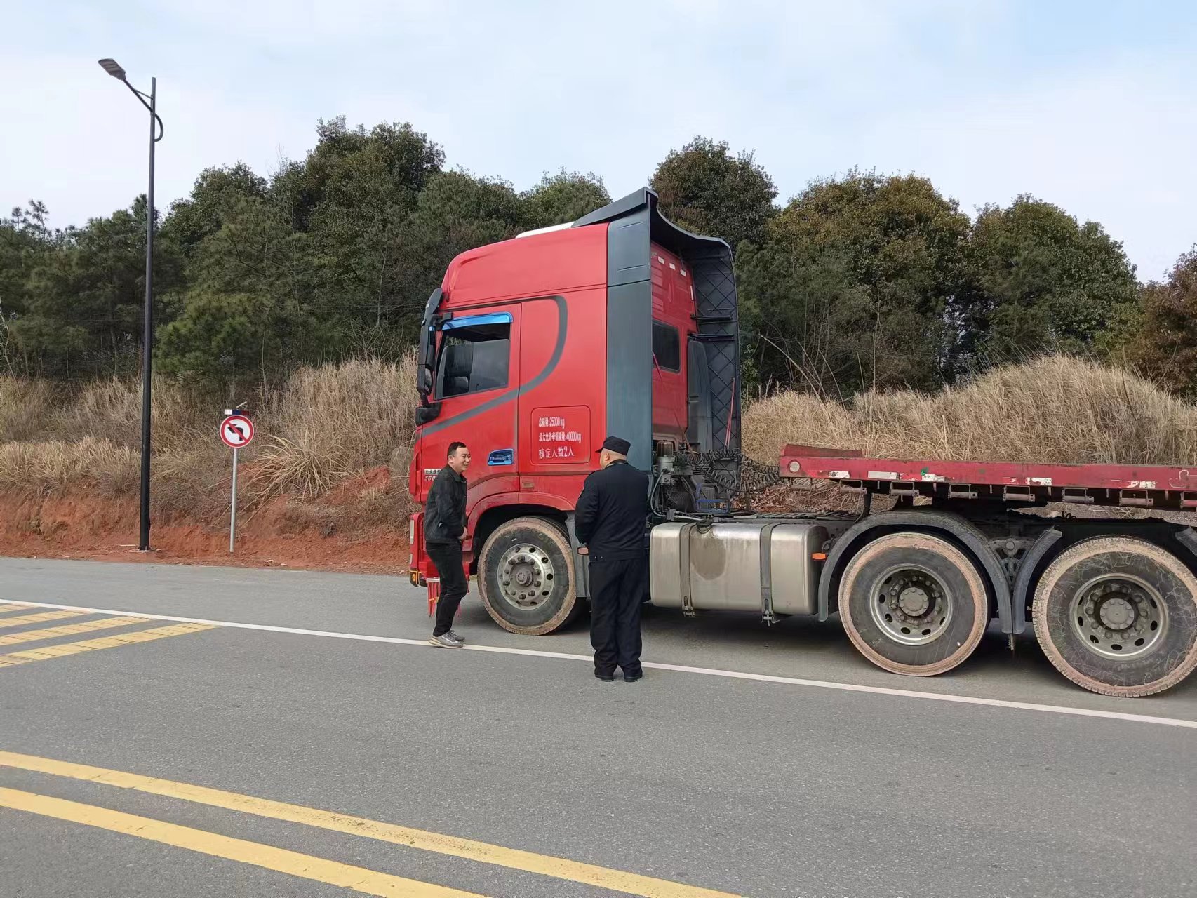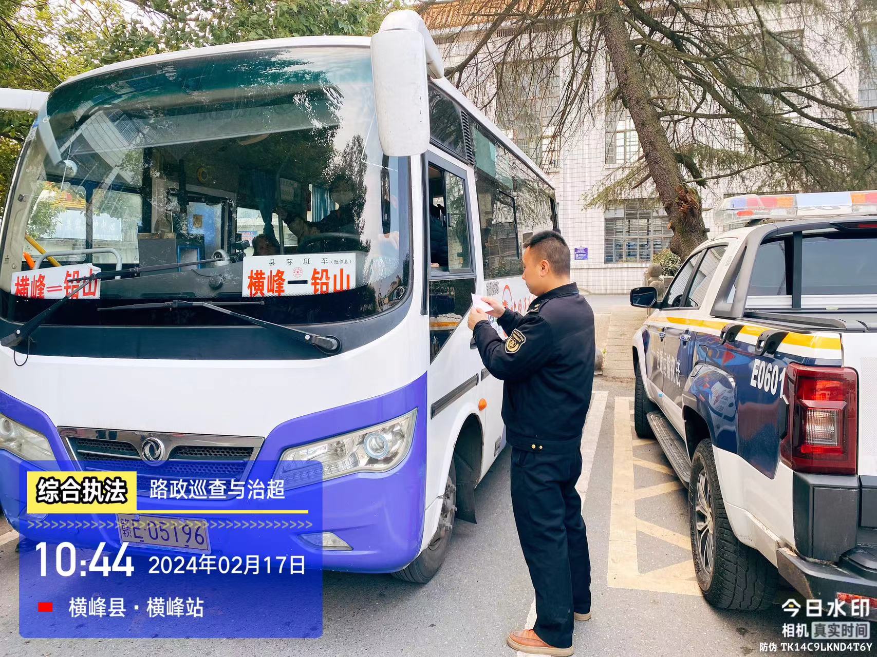 橫峰縣交通運輸局執法大隊在春運期間路政巡查G320;S205;上萬高速;火車站汽車站;維護道路交通安全暢通,驅離停靠路邊大型貨車及打擊非法營運。