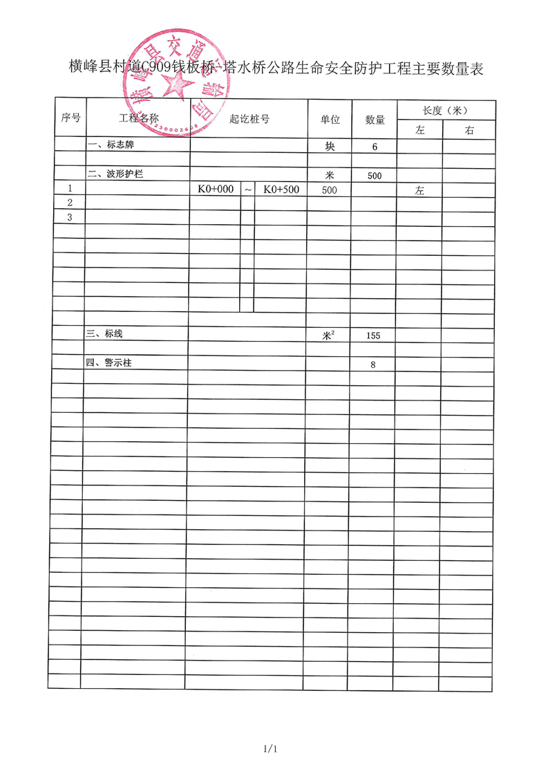 關(guān)于橫峰縣村道C909錢板橋至塔水橋公路安全生命防護(hù)工程一階段施工圖設(shè)計的批復(fù)