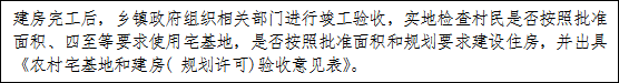 11.房屋竣工后15天內(nèi),建房戶向鄉(xiāng)鎮(zhèn)(街道、場、辦)農(nóng)村居民住房建設(shè)辦公室竣工驗(yàn)收申請,鄉(xiāng)鎮(zhèn)(街道、場、辦)農(nóng)村居民住房建設(shè)管理辦公室收到竣工驗(yàn)收申請后,2個工作日內(nèi)組織鄉(xiāng)鎮(zhèn)政府、自然資源局、農(nóng)業(yè)農(nóng)村局、村(居)委會到現(xiàn)場進(jìn)行規(guī)劃和土地驗(yàn)收。驗(yàn)收合格的,申請辦理不動產(chǎn)權(quán)登記,領(lǐng)取不動產(chǎn)權(quán)證書;未經(jīng)驗(yàn)收或者驗(yàn)收不合格的不得辦理不動產(chǎn)權(quán)登記。