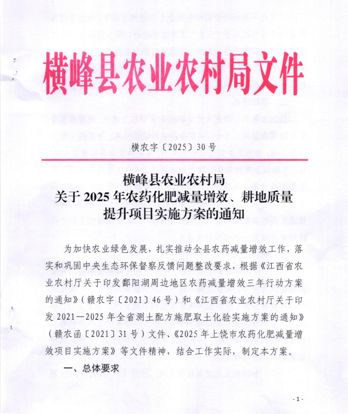 橫峰縣農業農村局關于2025年農藥化肥減量增效、耕地質量提升項目實施方案的通知
