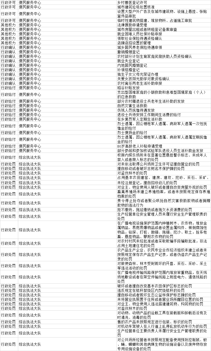 橫峰縣司鋪鄉(xiāng)人民政府賦權(quán)事項(xiàng)承接清單