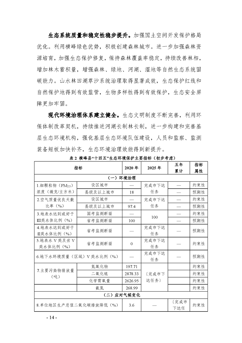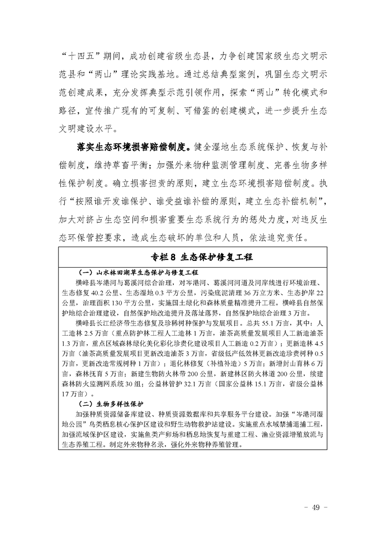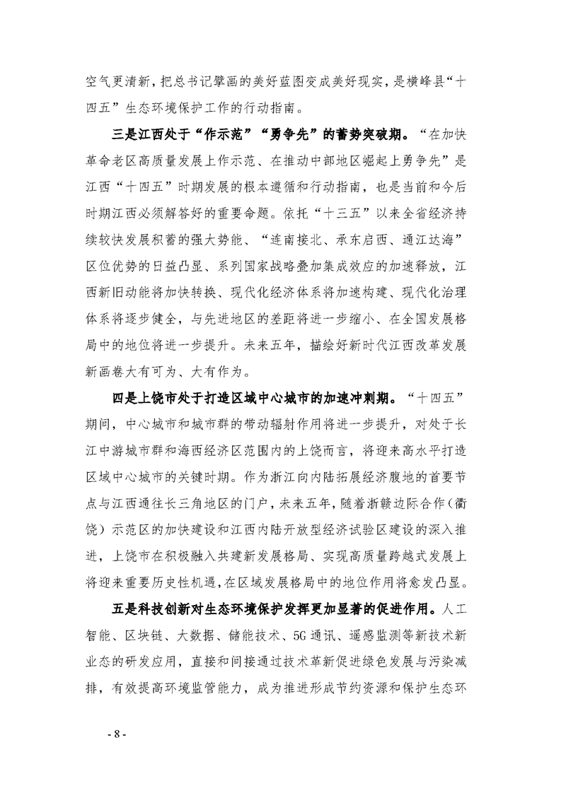 橫峰縣人民政府辦公室關于印發橫峰縣生態環境保護 “十四五”規劃的通知