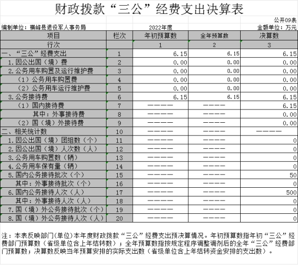 本部門2022年度財(cái)政撥款“三公”經(jīng)費(fèi)支出全年預(yù)算數(shù)為 6.15萬(wàn)元,決算數(shù)為6.15萬(wàn)元,完成全年預(yù)算的100 %,決算數(shù)較2021年減少0.19萬(wàn)元,下降3 %,其中:
