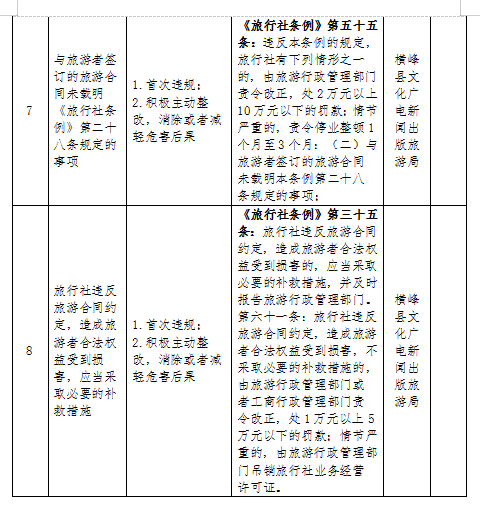 橫峰縣文廣新旅行業一般違法行為從輕、減輕行政處罰清單和不予實施行政強制措施清單