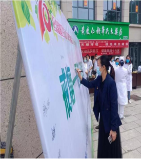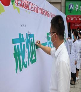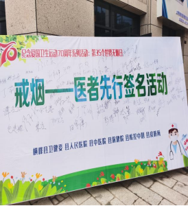 5月31日上午,衛健委黨委書記、主任帶領近千名醫護人員參加了“戒煙-醫者先行”簽名活動,醫護人員及過往行人紛紛在橫幅上簽上姓名作出承諾,表達拒絕煙草的決心。咨詢現場,醫務人員還為過往行人開展了煙草危害科普宣傳、健康體檢等。通過發放吸煙有害健康折頁、講解戒煙方法、播放控煙錄音和擺放宣傳展板等多種形式,喚醒更多的市民拒絕煙草,保護環境,守護健康!當天,全縣各黨政機關利用電子顯示屏滾動播放了煙草威脅環境宣傳海報。