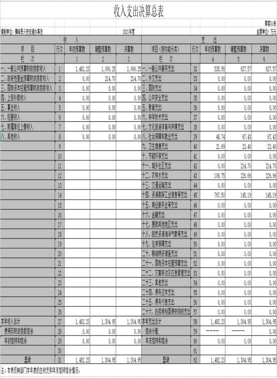 本部門2021年度收入總計1304.75萬元,其中年初結轉和結余0萬元,較2020年減少826.77萬元,下降63 %;本年收入合計1304.75萬元,較2020年減少826.77萬元,下降63 %,主要原因是:本年項目減少。