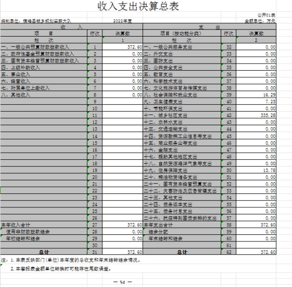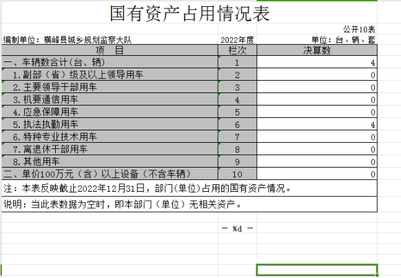 橫峰縣城鄉規劃監察大隊2022年度決算