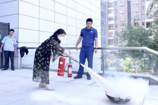 隨著濃煙彌漫,消防警報響起,應急疏散演練正式開始。各部門迅速反應,按照預定路線逃生。大家手捂口鼻,俯身貼墻撤離,有序完成疏散任務。與此同時,消防隊員快速撲滅“著火點”,順利控制“火災”。疏散到安全區域后,消防教官詳細講解了火場逃生的自救技能和消防器材的使用方法,以“提、拔、握、壓”四字口訣指導演示如何正確使用滅火器,并邀請大家上手體驗,現場氣氛熱烈又有條不紊。