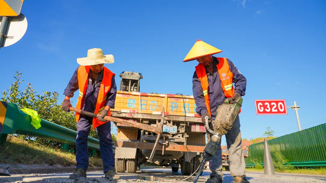 8月13日,在G320國道司鋪段路面功能性改造工程施工現(xiàn)場,養(yǎng)護工人頭頂烈日,此時路面溫度已接近60攝氏度,而他們腳下正在施工的瀝青路面溫度更是超過150攝氏度,工人們大汗淋漓地揮舞著手上的工具配合著攤鋪機對路面的瀝青混合料進行攤鋪平整,雙重“烤”驗下,他們用專業(yè)與汗水演繹著屬于公路人的“熱辣滾燙”。施工現(xiàn)場熱浪滾滾,養(yǎng)護人員沒有任何怨言,依然在烈日之下堅持工作。“每天下來,衣服就沒干過,水要喝掉10多瓶,雖然天氣很熱,但道路養(yǎng)護關乎通行安全,哪怕天氣再熱,我們也要按標準完成路面巡查養(yǎng)護工作,確保道路狀況良好。”一線作業(yè)養(yǎng)護工人何光明說道。