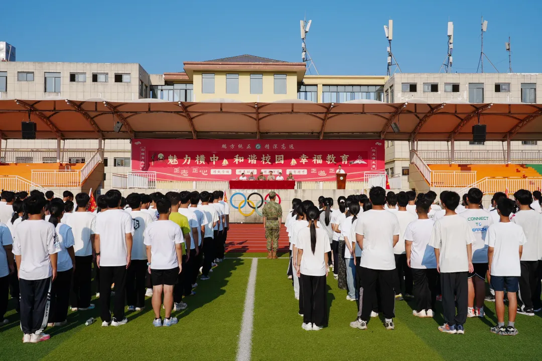 9月4日,橫峰中學2025級高一新生軍訓結營大會在橫峰中學田徑運動場舉辦??h委常委、縣人民武裝部部長呂煥順到現場觀摩,縣人武部、縣教體局、橫峰中學相關負責人參加大會。