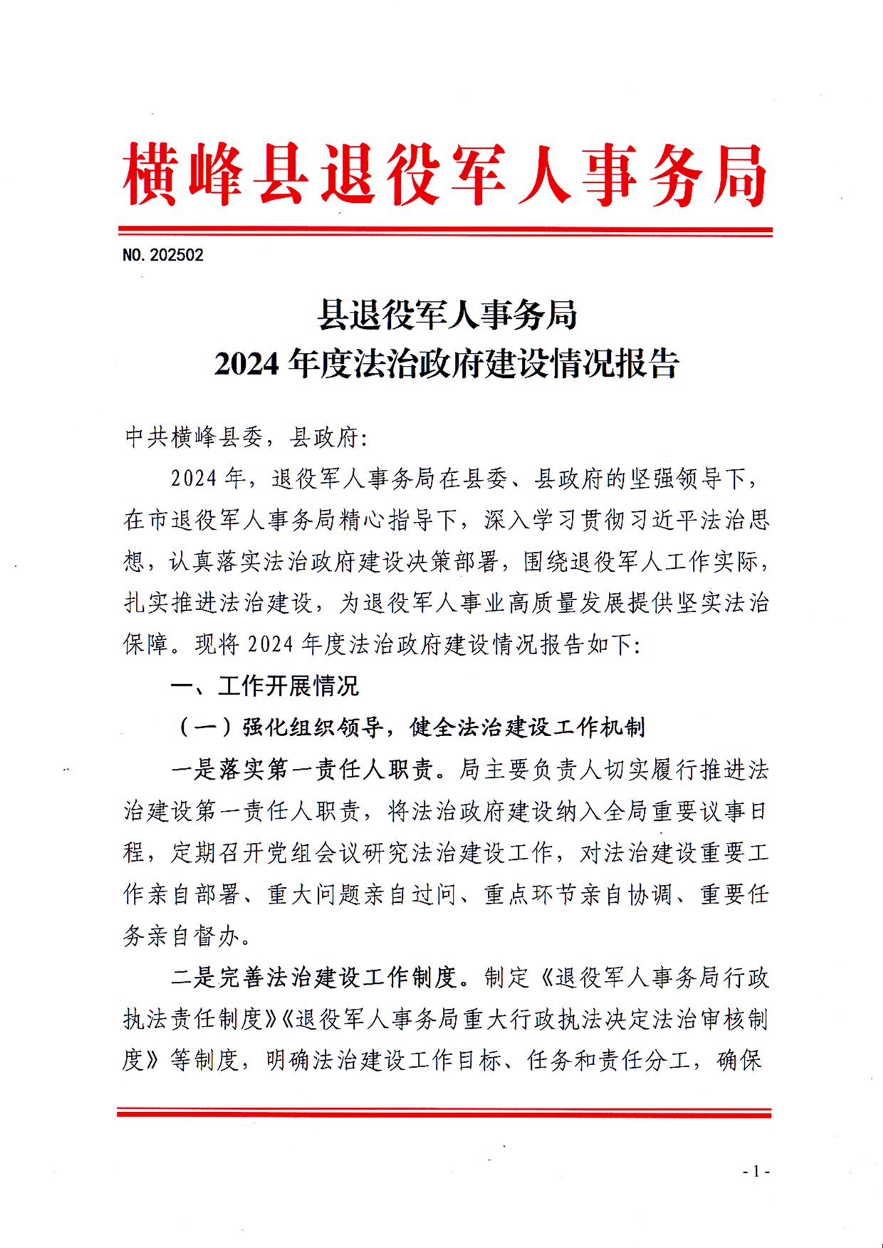 橫峰縣退役軍人事務(wù)局2024年度法治政府建設(shè)情況報(bào)告