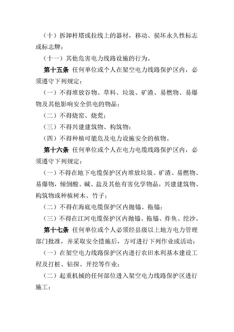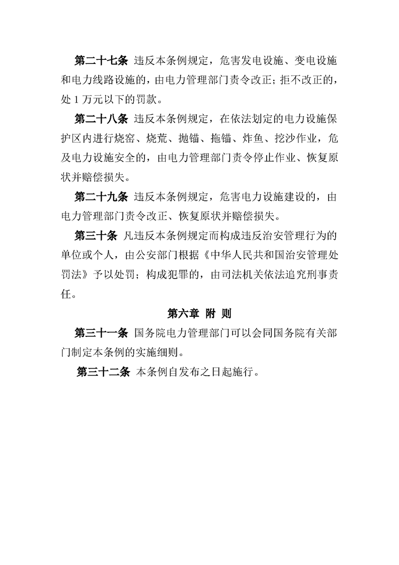 電力設施保護條例 中華人民共和國國務院令(第239號)