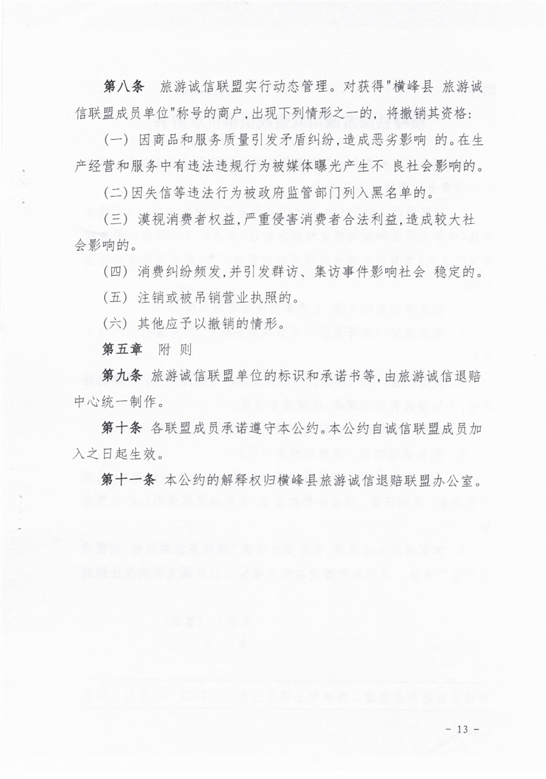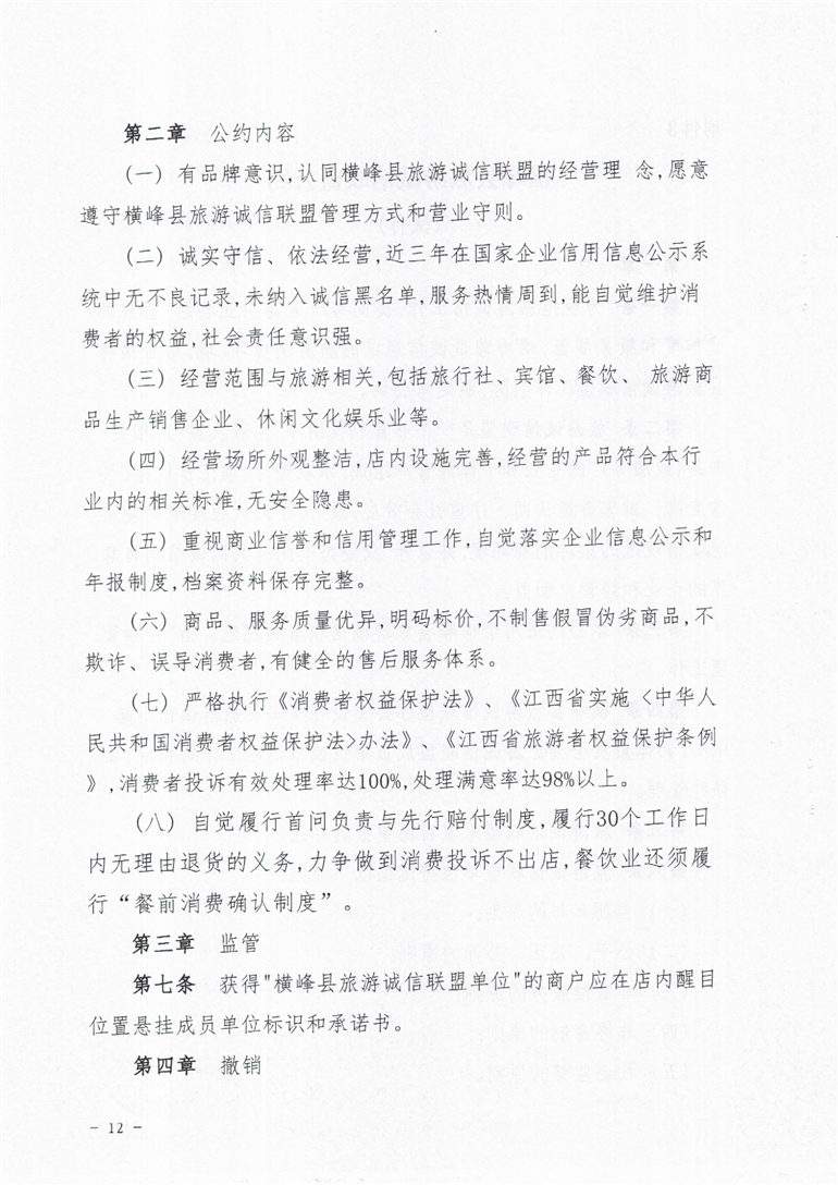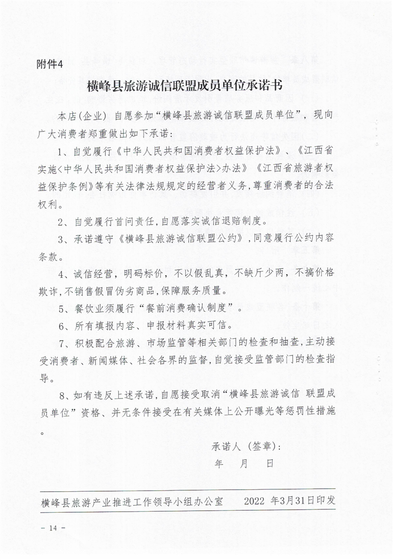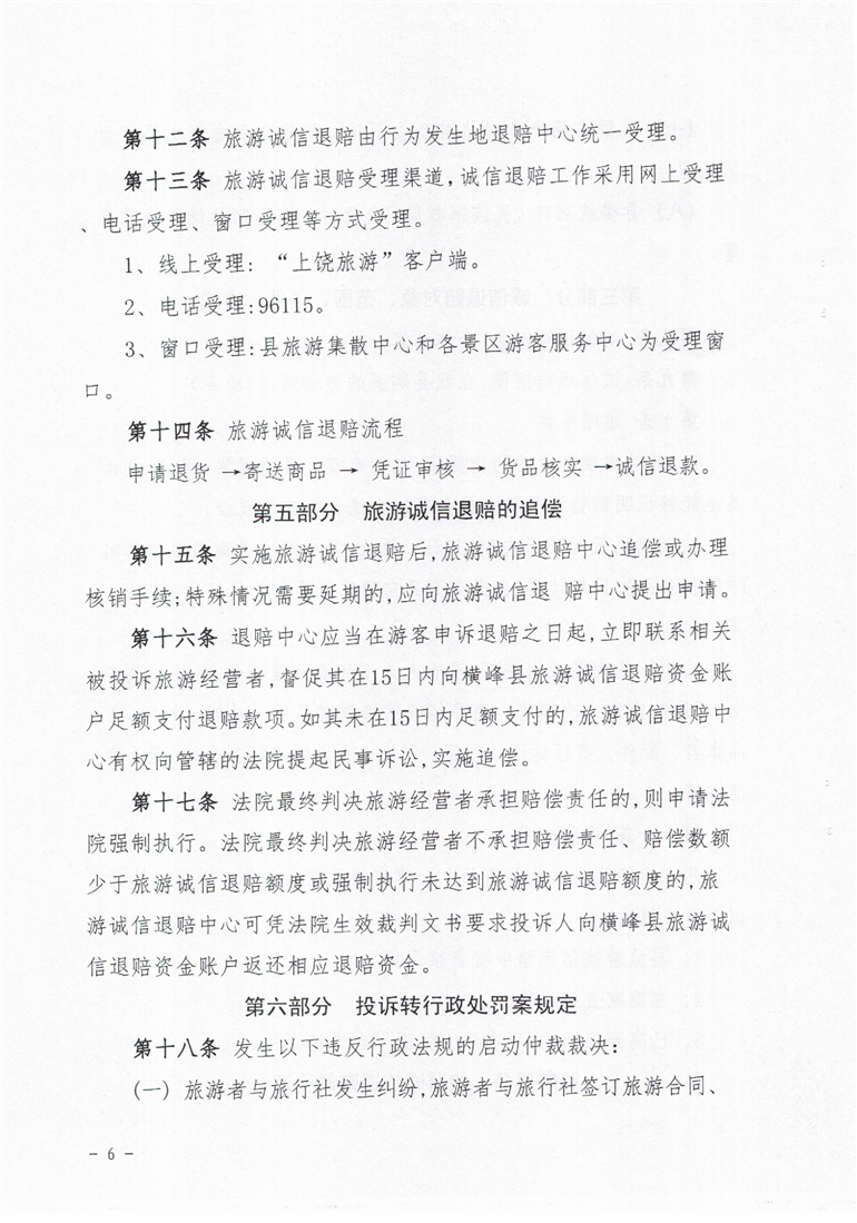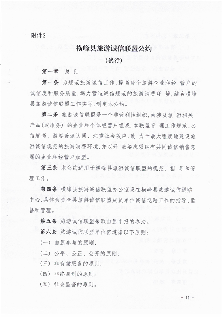 關于印發《橫峰縣旅游誠信退賠處理機制實施細則(試行)》
