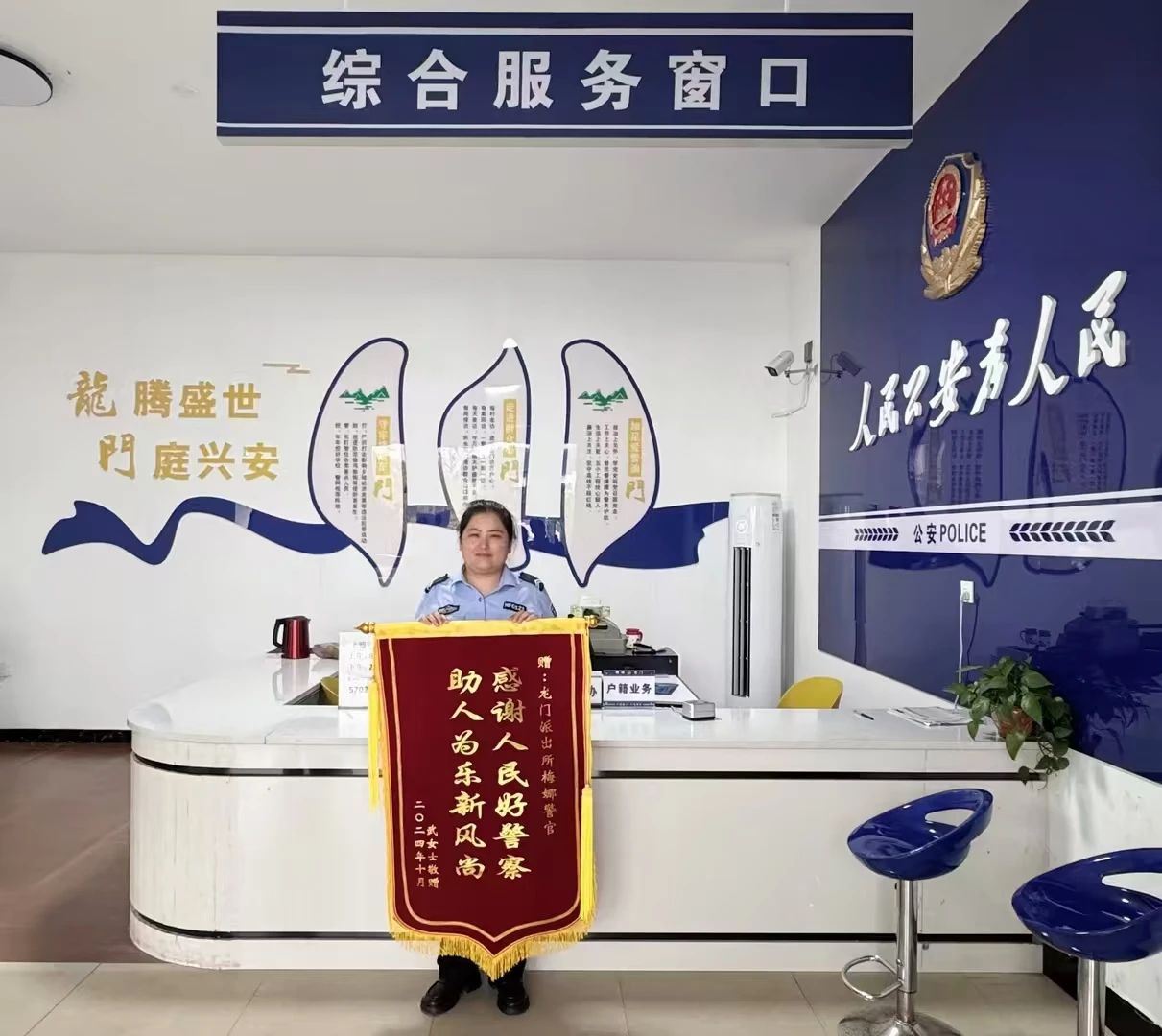 10月18日上午,龍門派出所收到了一面印有“感謝人民好警察,助人為樂新風尚”的錦旗。