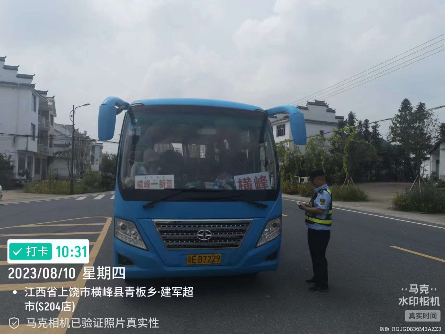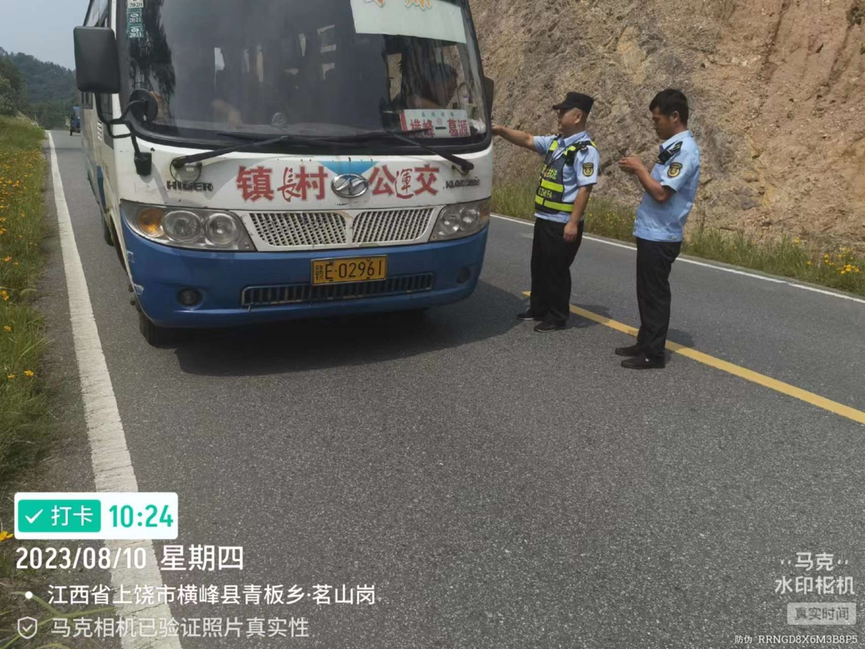 橫峰縣交通運輸局執法大隊在青板徐村—葛源路口對過往的農村客運班車進行道路交通重大事故隱患專項排查