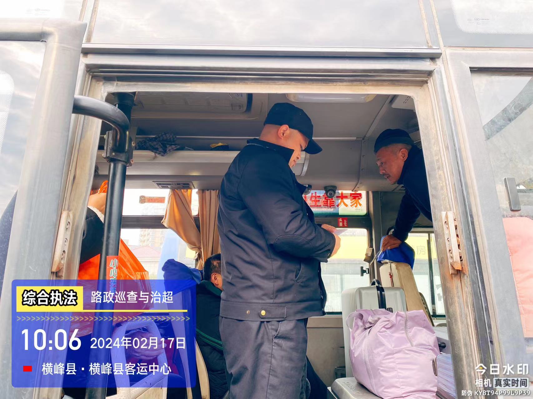 2月17日橫峰縣交通運輸局執法大隊在春運期間路政巡查G320;S205;上萬高速;火車站汽車站;維護道路交通安全暢通,驅離停靠路邊大型貨車及打擊非法營運。