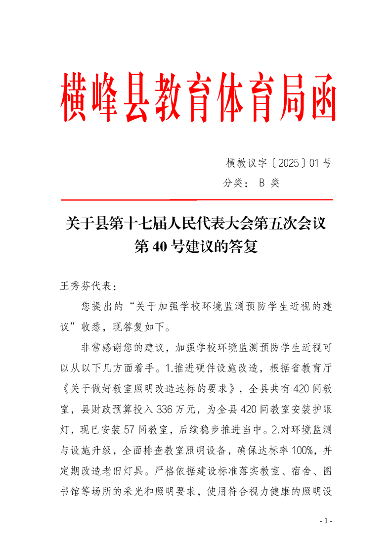 關(guān)于縣第十七屆人民代表大會(huì)第五次會(huì)議第40號(hào)建議的答復(fù)