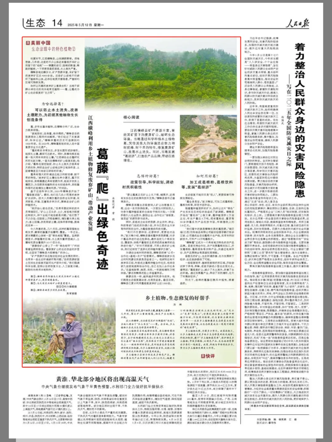 “葛的根系非常發(fā)達(dá),多呈長(zhǎng)圓形或紡錘形,能深扎土壤,最深可達(dá)數(shù)米。同時(shí),其橫向根系能像一張大網(wǎng)牢牢抓住土壤?!苯骶G色生態(tài)葛研究所所長(zhǎng)趙文峰,一直關(guān)注橫峰的礦山修復(fù)實(shí)踐,他介紹,“葛根在固定陡坡、防止水土流失方面具有天然優(yōu)勢(shì),特別適合礦山跡地這種立地條件差、土層瘠薄甚至只有巖石碎礫的環(huán)境?!?/div>