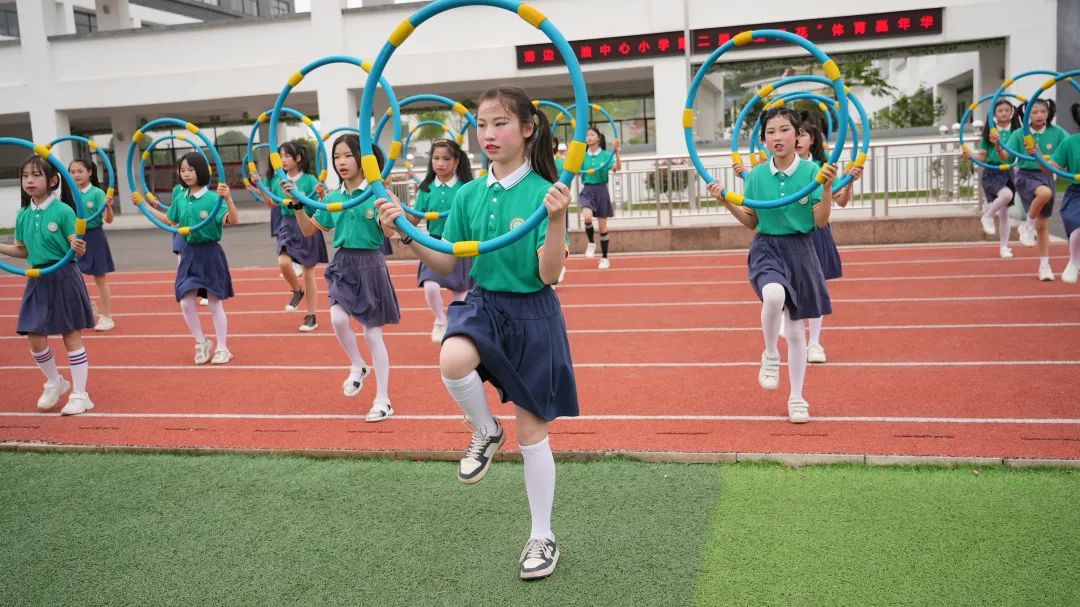 學生運動員代表宣誓后,彩煙升起,旌旗飄蕩,運動激情被點燃,現場成了歡樂的海洋。開幕式以《扎染秀》、跳繩《神采飛揚》、舞蹈《漢風麗影》《律動呼啦圈》等校園文化特色課開場,進行了精彩絕倫的表演,學生們歡快起舞。