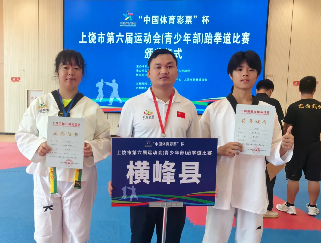 本次賽事中,橫峰縣跆拳道健兒們斗志昂揚,奮勇爭先。汪可心在女子丙組53公斤以上級比賽中勇奪冠軍,周鴻杰斬獲男子乙組55公斤級金牌。蔡子謙獲得男子甲組51公斤級亞軍,徐駿軒、蔡欣誠分獲男子丙組40公斤級和男子甲組59公斤級第五名。
