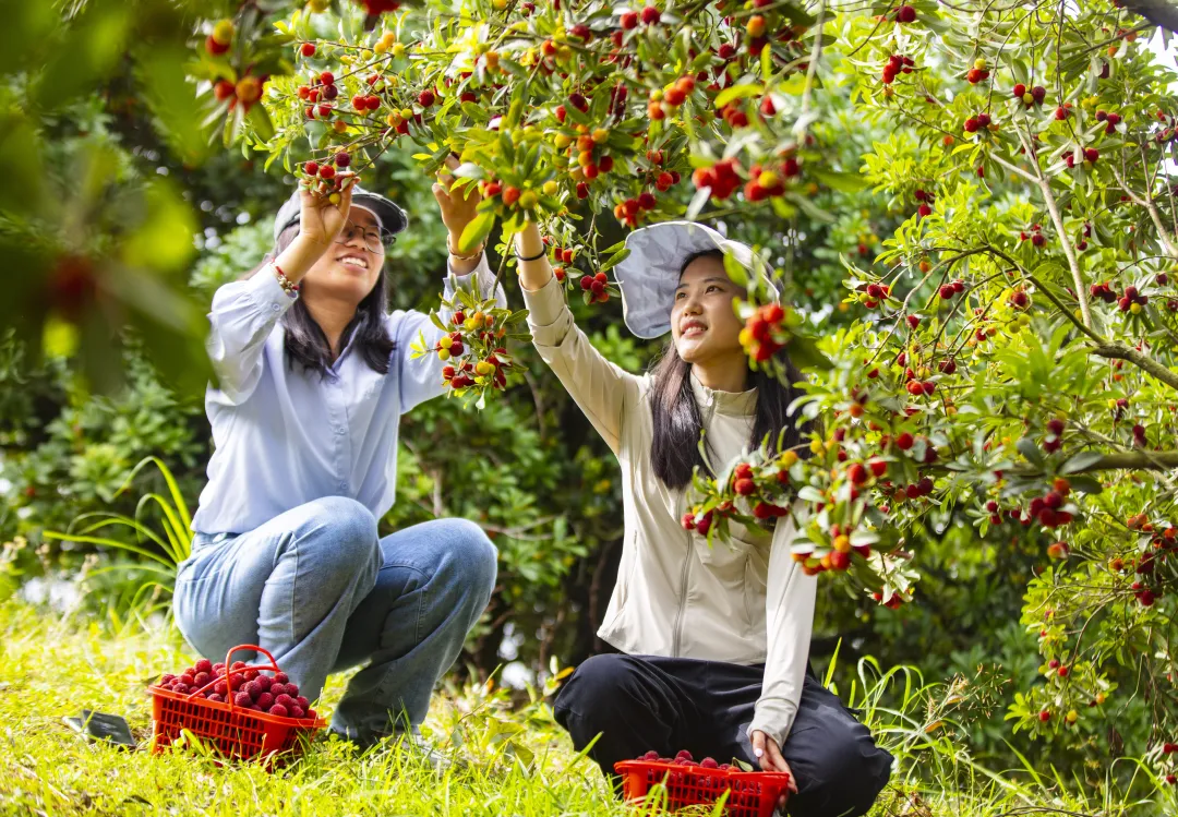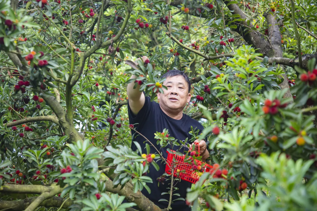 6月4日,走進楊梅基地,錯落有致的枝葉間,一顆顆淺紅或深紫的楊梅壓彎了枝條,令人垂涎欲滴。游客們提著籃子,穿梭在楊梅樹間,采摘新鮮的楊梅,嘗一口夏日的鮮甜。
