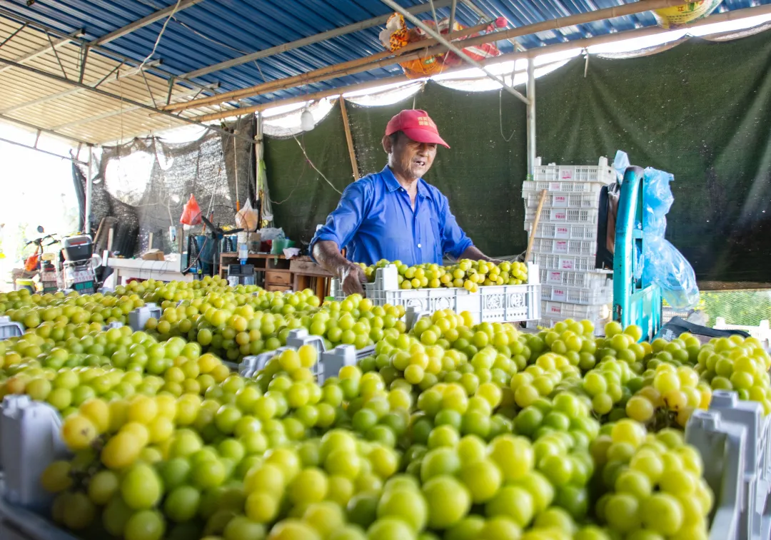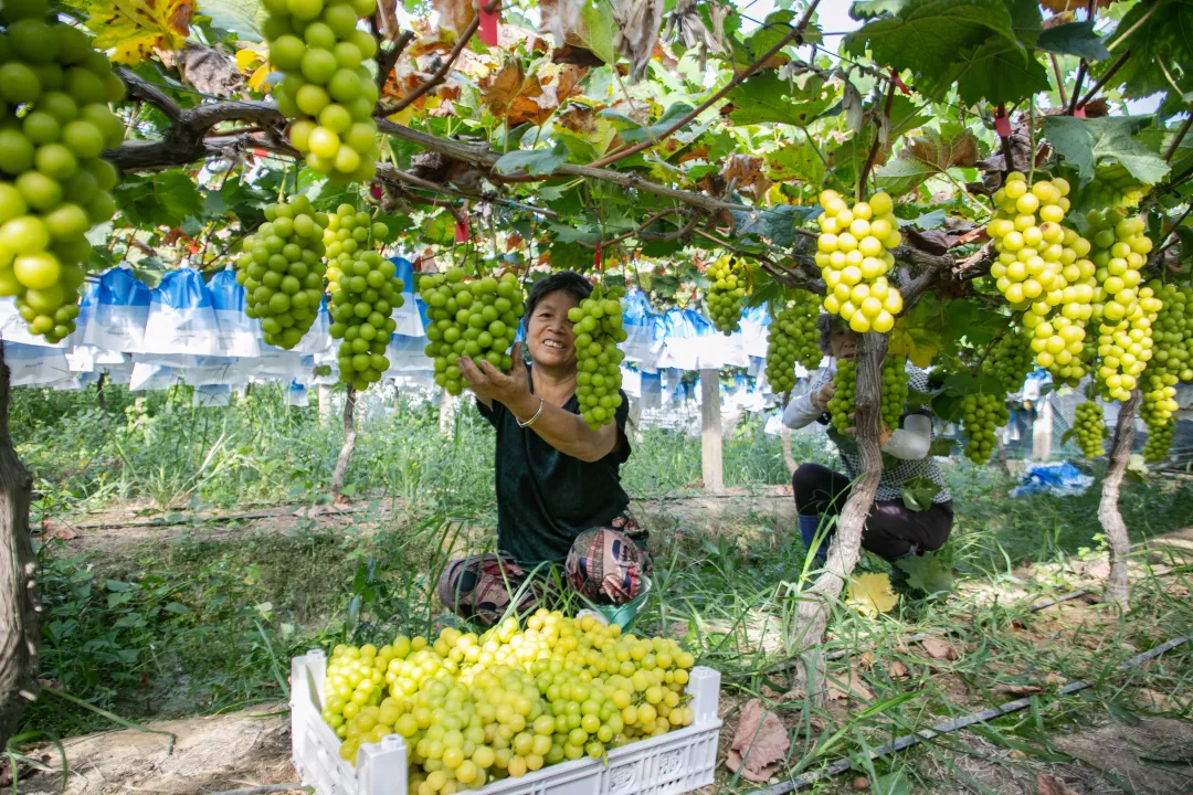 “陽光玫瑰”作為近年來廣受市場歡迎的優質葡萄品種,以其濃郁的玫瑰香氣和脆甜多汁的口感著稱。蔡塢村土壤肥沃、光照充足,加上種植戶科學精細的管理,讓這里的葡萄不僅果形勻稱、皮薄無籽,甜度更是遠超普通葡萄,每一口都帶著濃郁的果香,贏得了市場的廣泛認可。