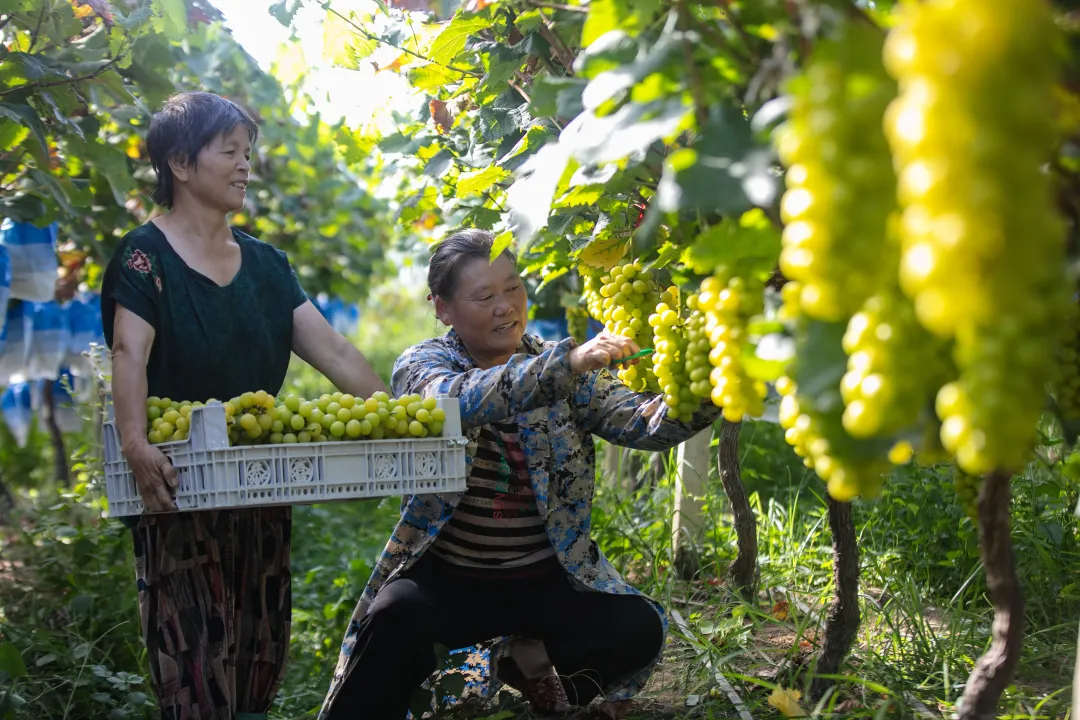 “我們在蔡塢村種植了12年葡萄,今年種了70余畝‘陽光玫瑰’,預計產量在5萬公斤。今年的葡萄品質格外好,顆粒大、甜度高,果形也周正飽滿,嘗過的人都夸口感好,歡迎大家來園里嘗嘗鮮。”果園負責人趙宗蘭說道。(記者 薛南)