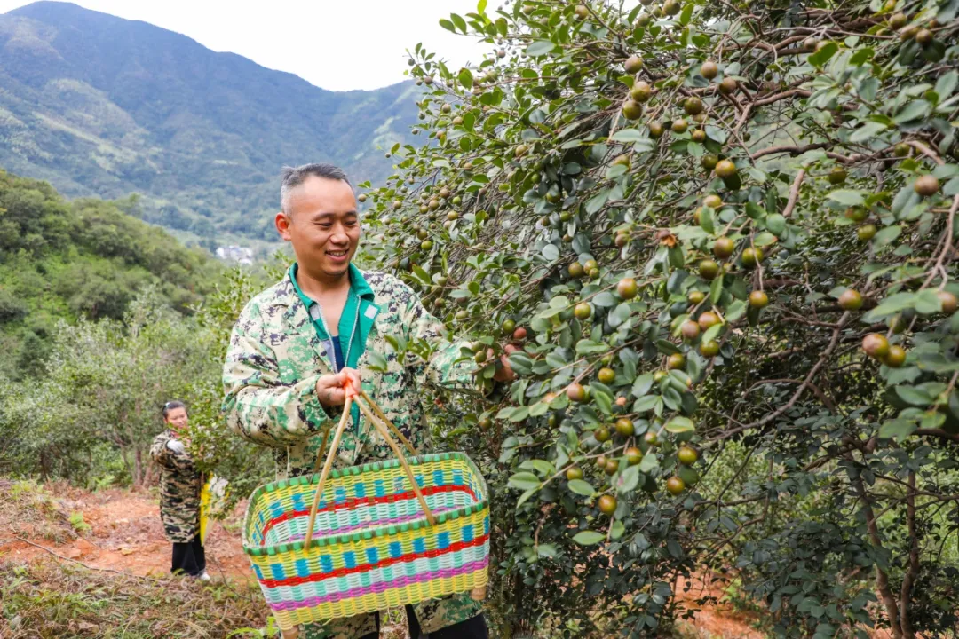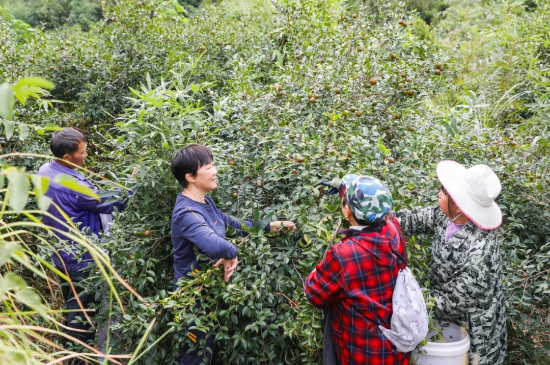 新篁辦事處山田村地處山區(qū),海拔較高,也為油茶樹(shù)生長(zhǎng)提供了良好的環(huán)境。晨曦微露,山田村村民們紛紛搶抓時(shí)節(jié),全家老小齊上陣,提著水桶、挎著袋子,穿梭在層疊翠綠的油茶林間,動(dòng)作嫻熟地采摘著圓潤(rùn)飽滿(mǎn)的油茶果,漫山遍野都是忙碌的身影,歡聲笑語(yǔ)在山谷中回蕩。