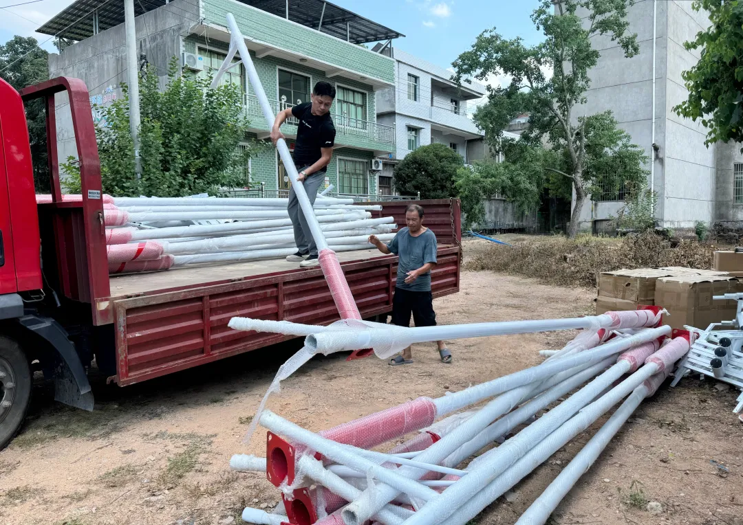 設備一落地,村民們便自發地圍了上來。“咱們都來搭把手!”村里的壯勞力們擼起袖子,在村干部的協調下,穩穩托起路燈部件,汗水浸濕了衣衫,但比汗水更閃亮的,是大家眼中為家鄉出力的熱忱,是對更亮堂夜晚的共同期待。路燈安裝工作高效展開。挖坑、立桿、接線……村干部們全程跟進,確保每一盞燈都能穩穩地立在村民選的位置上,照亮鄉親的歸家路。