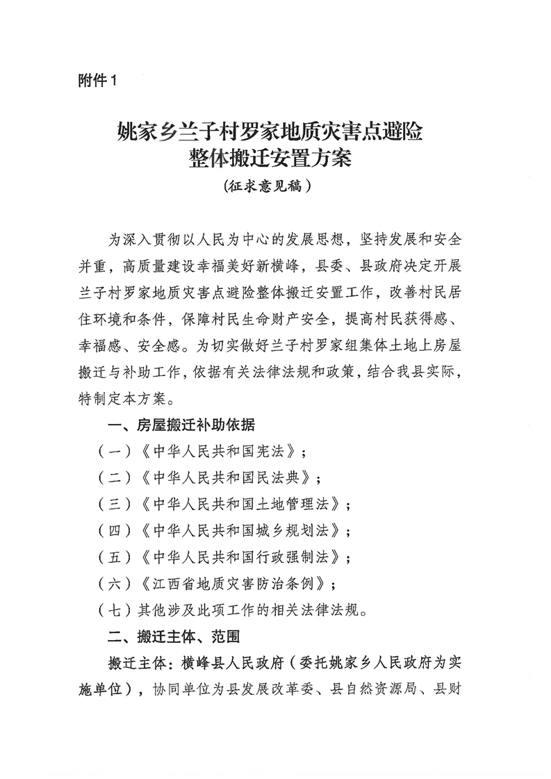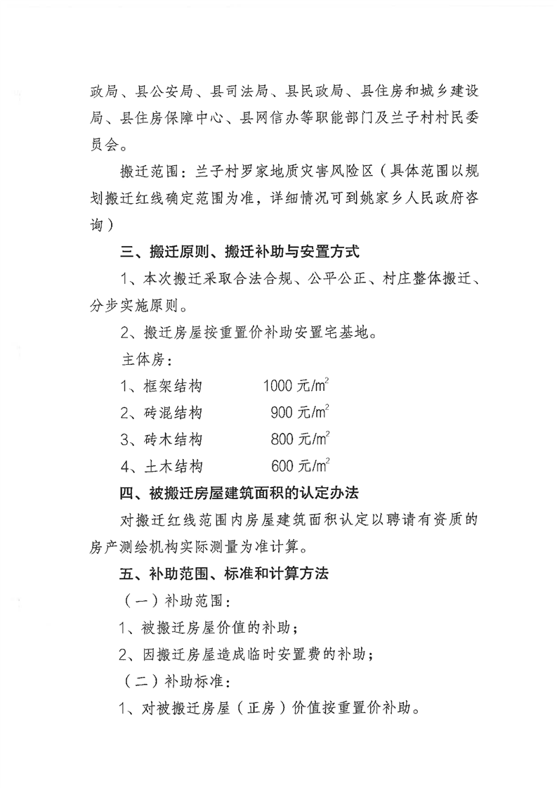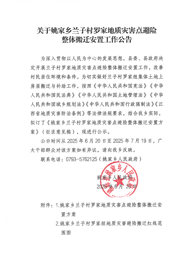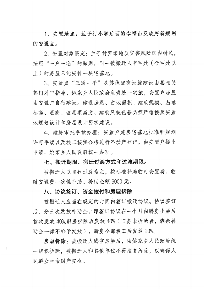 關于姚家鄉蘭子村羅家地質災害點避險整體搬遷安置工作公告