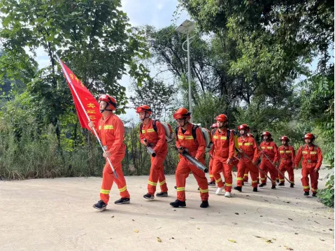 國慶當天,橫峰縣專業森林消防大隊組織開展攜裝徒步拉練活動。