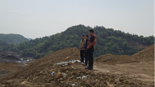會同岑陽所到大山崗瓷土礦復耕現場,并陪同地質局第八大隊到廣廈片石場南側取樣做是否為礦產品鑒定。